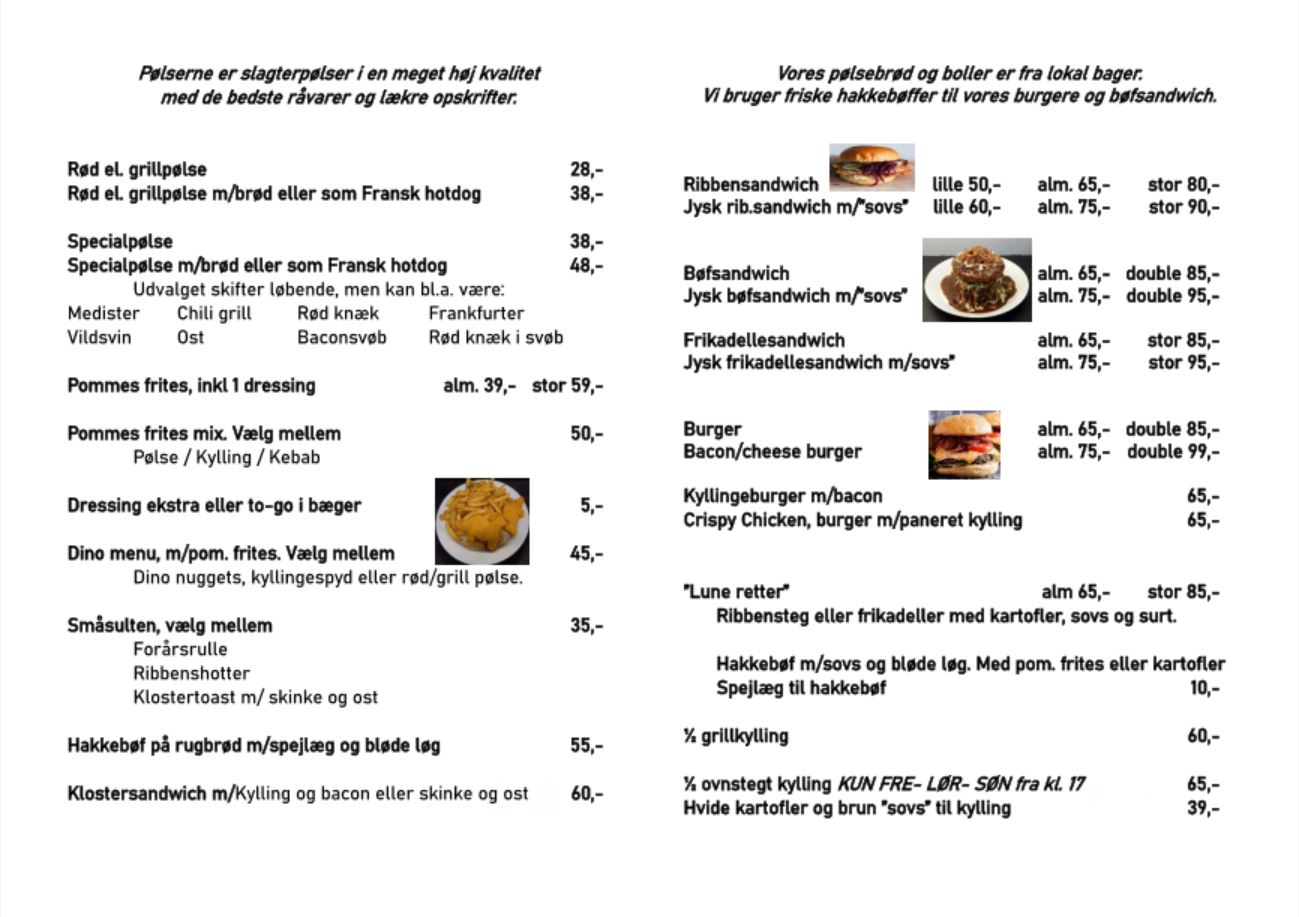 Mød os på Facebook Tlf.: +45 41 444 666 Kloster Grill ApSSorø Torv 104180 SorøCVR-nr.: 37004146 mail@klostergrill.dk Tlf.: +45 41 444 666 Smiley kontrolrapport